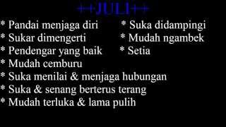 - SIFAT BAWAAN LAHIR BERDASARKAN BULAN LAHIR