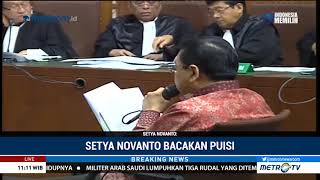 Setya Novanto mengakhiri pembacaan pledoi pribadinya dengan puisi berjudul Di Kolong Meja. Puisi \'karya Linda Djalil untuk Mas Novanto\' itu dia bacakan ...